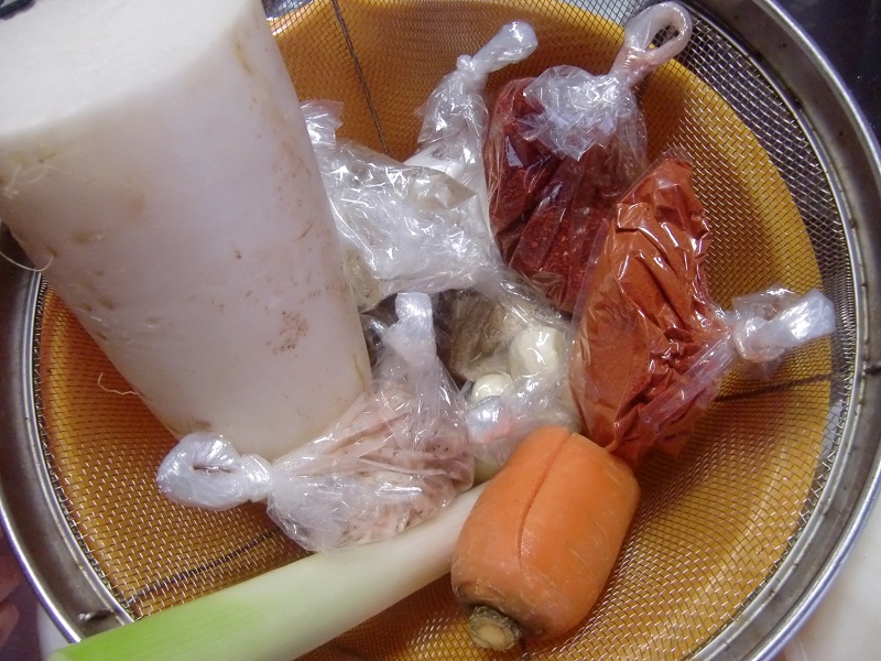 これは、ヤンニョム(薬念)という塩漬けした白菜に揉み込んでいく具の材料です。