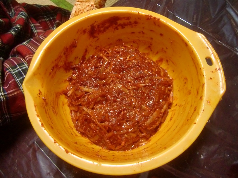 まんべんなくヤンニョムを揉みこみ、あとはきれいに丸めて出来上がり!