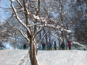 地面には、凍っているところもあるので、すべって転ばないように気をつけなければなりません。。