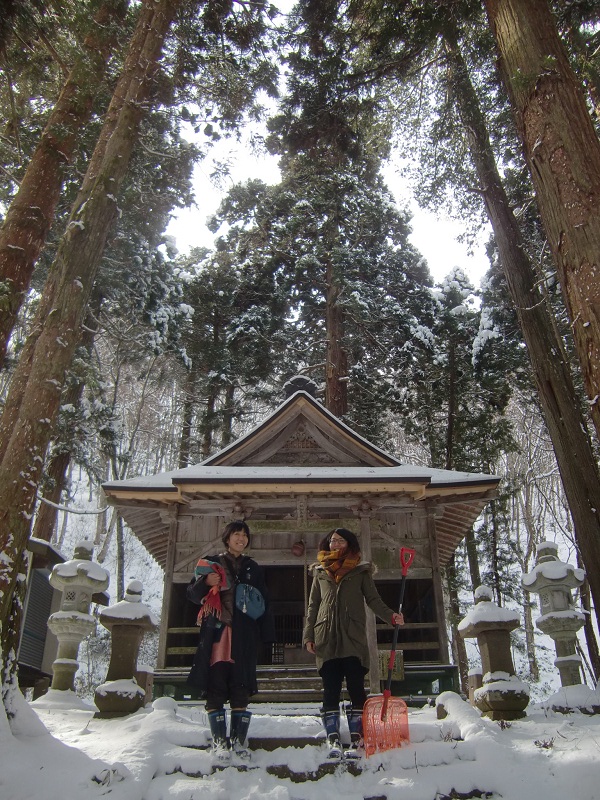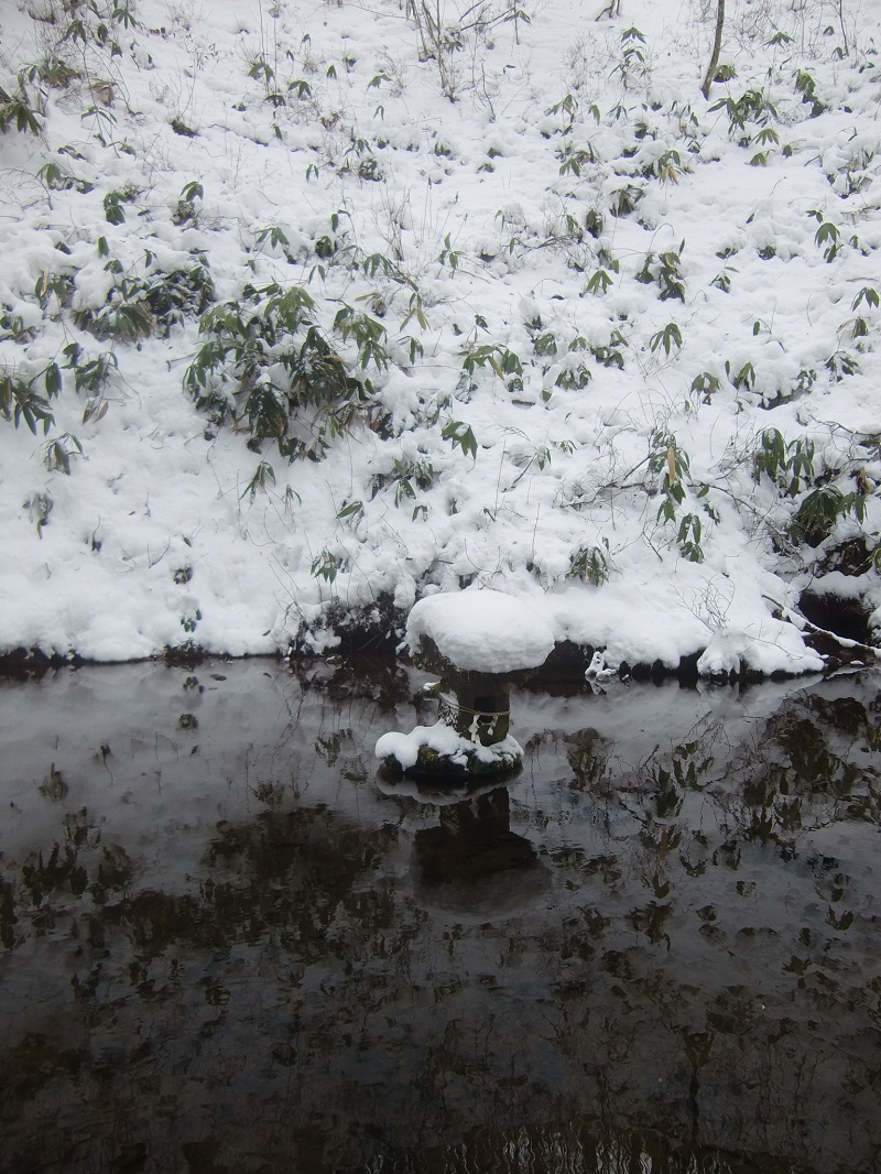池の中の祠も、大きな雪の帽子をかぶっていました。