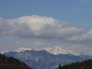 児童クラブの前から望むアルプスです。