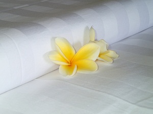 ベッドの上には、プルメリアの花が、、、