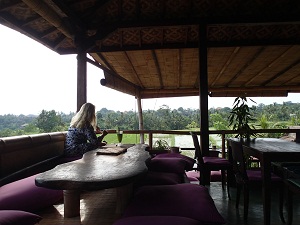 雄大な棚田を望みながら、吹き抜ける風を感じながら、ココナツジュースやインドネシア料理を頂くことが出来ました!