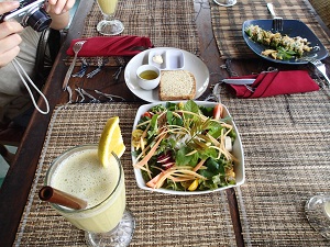 農園で採れたてのサラダやフルーツジュースを頂きました。