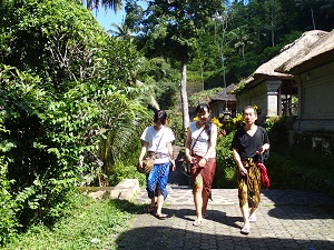 ここで沐浴をするためには、サロンという腰巻とスレンダンという腰ひもで、簡易なバリの正装をしなければなりません。