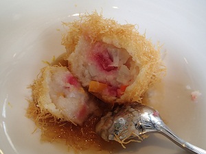 そして、「クレポン」という、ココナツフレークまぶした椰子糖入り団子。