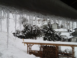 母屋の屋根のツララです。