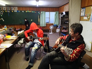 時折顔を出しに行く地域の児童クラブでは、子どもたちの歓声の中で、仁さんのギター教室が行われていました。。