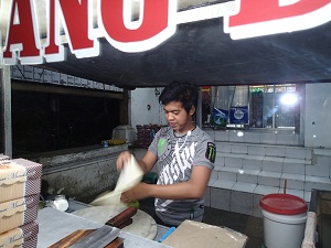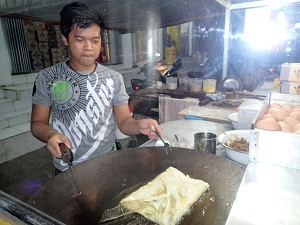 屋台で注文を受けてから調理をするお兄さん。