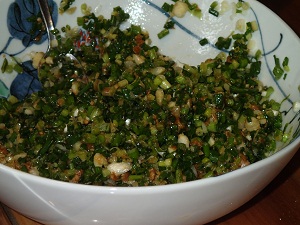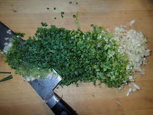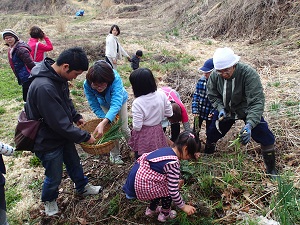 フキノトウを刻み、フキ味噌の作り方を伝授する佐藤さん、今回もまた東京から駆けつけてくださいました!
