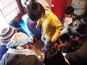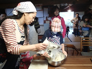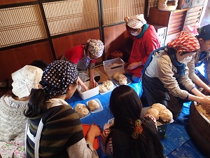「ぼくらのごはん」は、農事通信員でお馴染の笠井さんと、善光寺西之門で箱山ふとん店を営んでおられる箱ちゃんの共同の企画で、失われつつある大切な食文化をワークショップ形式で伝えています。これまでに、キムチ作りやお焼き作り、おぶっこ、栗ごはんなどのテーマで活動を重ねてこられています。