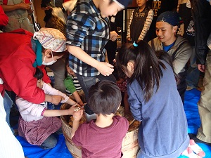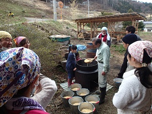 お母さんたちも、初めて農楽里いらっしゃる方たちばかりなのですが、、まるで親戚同志が田舎の実家に集まった時のように馴染み、そして共同で作業を進めていきます。準備から後片付けまで、ワイワイととても楽しい台所となりました!