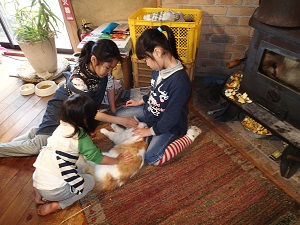 母屋の外では、、、チビ太に遊んでもらう!?子どもたちの姿もありました。