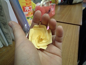 そして、山村留学の子どもから折り紙のバラの花の作り方を教わりました。
