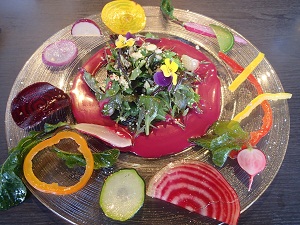 ビーツドレッシングをかけて、、、さらに彩り鮮やかになりました。