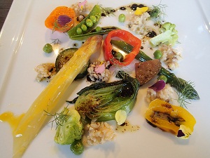 これは、一般的には加熱調理をして頂くことが当たり前のお野菜(グリンピース、カリフラワー、アスパラ・・・)をあえて選んで、真空減圧法でオイルを染み込ませた生のお野菜たち。