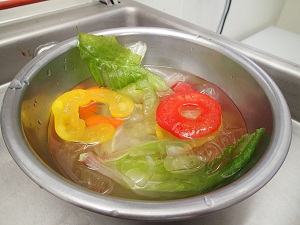 これは、水に入れてのテストですが、お野菜の細胞に水が浸み込み、つやが出てパリン、っとしました!