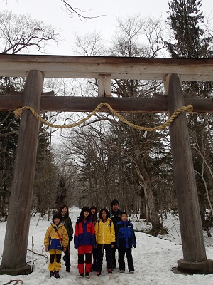途中、戸隠神社中社にて信州大学you遊未来のボランティアの学生さん3名と合流です。