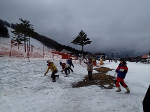 雪だけではなく、山も坂道も見たことのない離島の子どもたちです。
