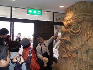 長野オリンピックの入場行進際に使われた稲わらの道祖神の大きさに、みなさん驚いていました。