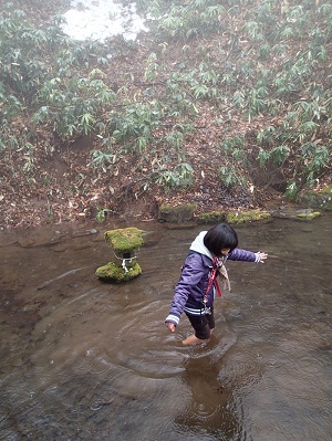 寒い中ではありましたが、みっちゃんとゆうきくんはお種池の中に入ってお参りもしました!