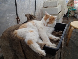 農楽母さんの横では、ミコ太がのんびりと毛づくろい・・・