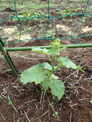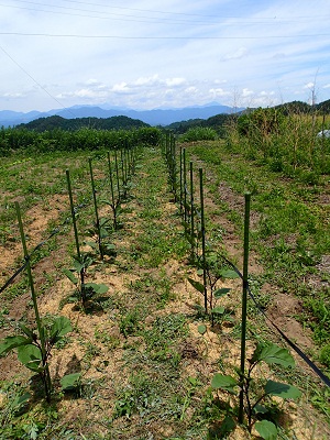 農楽母さんの農作業は、ニンジンの間引きやキュウリのネット張り。