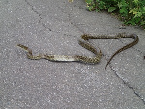 日が暮れて、母屋に戻ろうとしましたら、、今度はアオダイショウさんです!