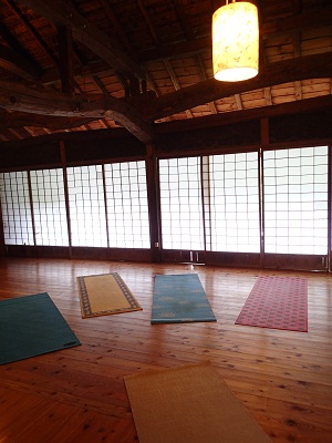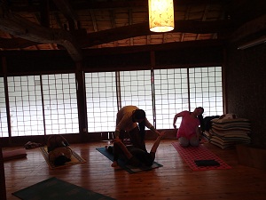 今日の午後は、長野市内のヨガ教室の先生、アッコちゃんのヨガ体験教室が農楽里の母屋の2階で開かれました。