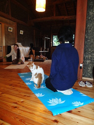 農楽母さんのヨガマットの上には、チャイも同伴。
