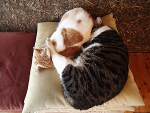 教室を終えまして、、気が付きますとにゃんこたちはお座布団の上でスヤスヤと、、
