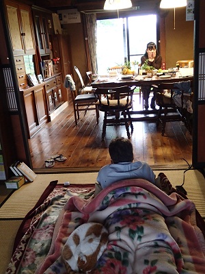 農楽里ファーム母屋では、お腹の調子がいま一つの小島さんが一休み中。。