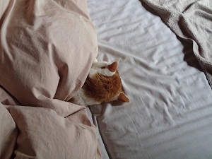 入れ違いに、チャイが甘えた声を出しながら布団に入ってきます。