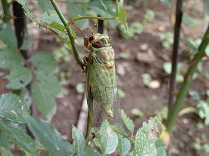 先日のこと、カフェの前で、羽化したてのとても綺麗なセミに出会いました!