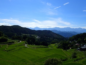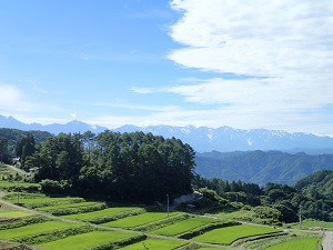 青い稲と青空と、白い雲とアルプスと、、