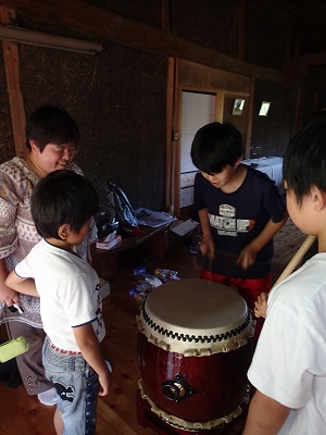 夕方からは、ボランティアに駆けつけてくださった南島さんとそのお友達の末廣先生が、けん玉と和太鼓のワークショップを開いて下さいました!