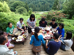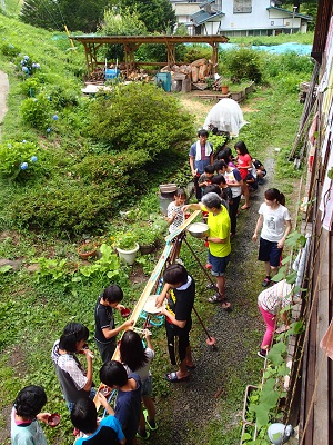 2日目のお昼には、流しソーメンもしましたね!