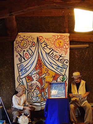 ヒロさん創作の紙芝居を、リエさんが民族楽器の生演奏で盛り上げます!