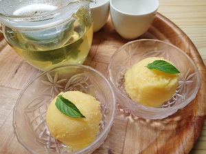 デザートには、パイナップルとマンゴーのシャーベット。