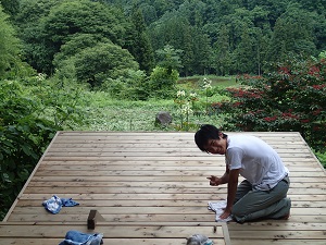 ランチのお客様が見える前に、雨上がりのウッドデッキを丁寧にお掃除して下さいました!
