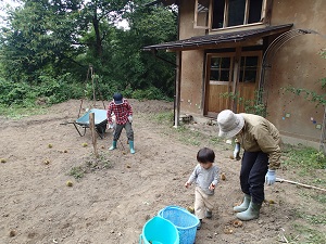 午後は、ヒロさん、リエさんが栗拾いのお手伝いに来て下さいました。