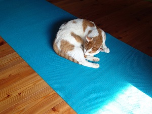 ヨガマットの上でお昼寝をするチャイです。