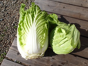 今日は、この秋お初の白菜とキャベツを収穫しました。