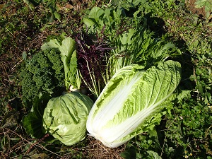 ハクサイ、キャベツ、水菜、紫水菜、小松菜、コカブ、ケール、大根、ニンジン、、、