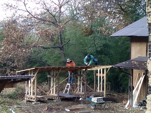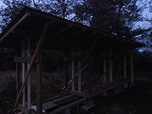 今日は、二つ目の薪置き場の仕上げのために、カミタさん、サエコさんが埼玉から日帰りでお越しになってくださいました!