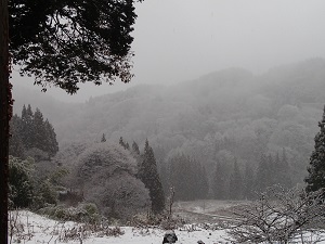 お昼前から、白く煙るように雪が降り始めました。