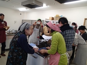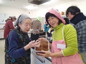 この日のおみそ汁には、農楽里の手作り味噌を使用して頂いたのですが、その味噌を初女さんに試食して頂きました。。