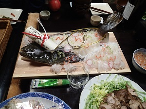 黒澤の佐藤さんの振る舞いで、ヒラメのお造りや、香箱蟹という、旬の海の幸、手作りのこのわたに塩辛に、カキの土手鍋、、一年に一度、普段口にすることのない海の幸の数々が、並びましたです!!