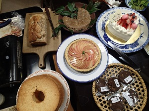 そして、デザートは、農楽母さんのリンゴのタルトと、みきさん、リエさん、笠井さん、あっこちゃんのの持ち寄りでこんなにたくさん並びました!
