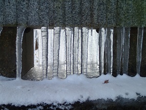 雪が積もり、ツララもこんなに下がっていました。